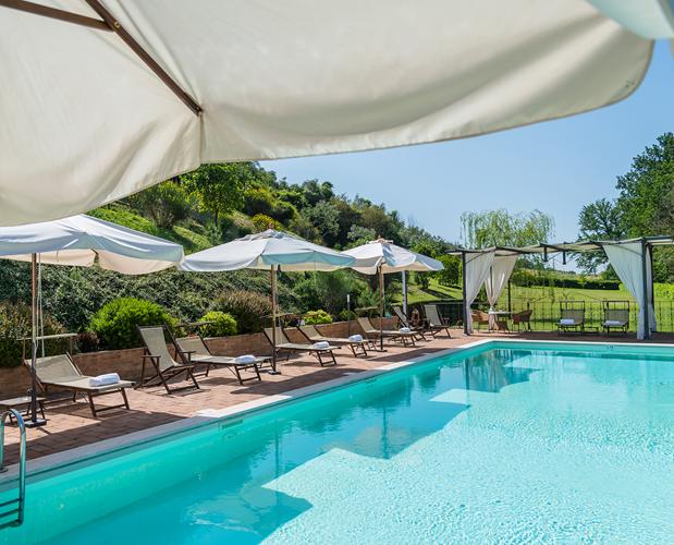 Immersa nel verde del nostro giardino, la piscina è un balcone naturale che domina l’ampia vallata del fiume Tevere. È il luogo ideale per rinfrescarsi nelle calde giornate estive o per godersi un tramonto indimenticabile.